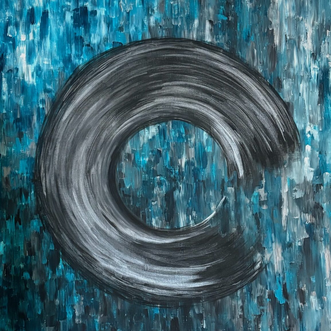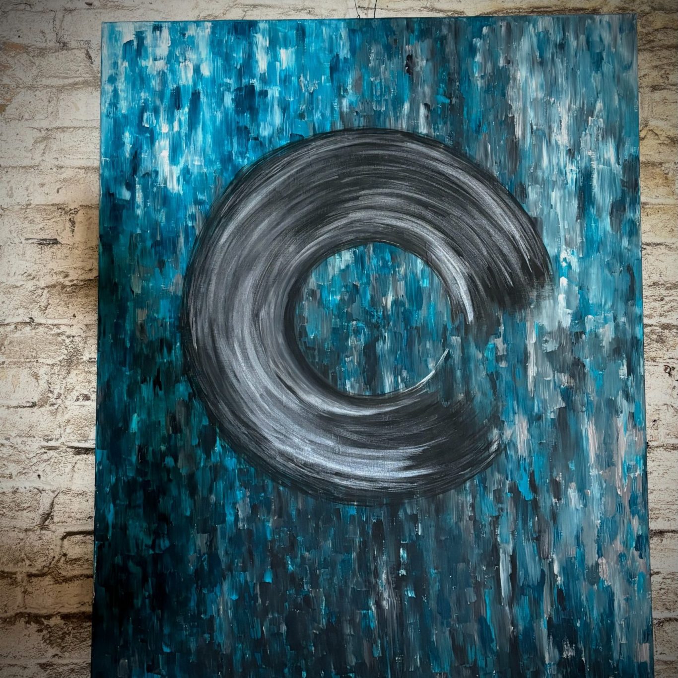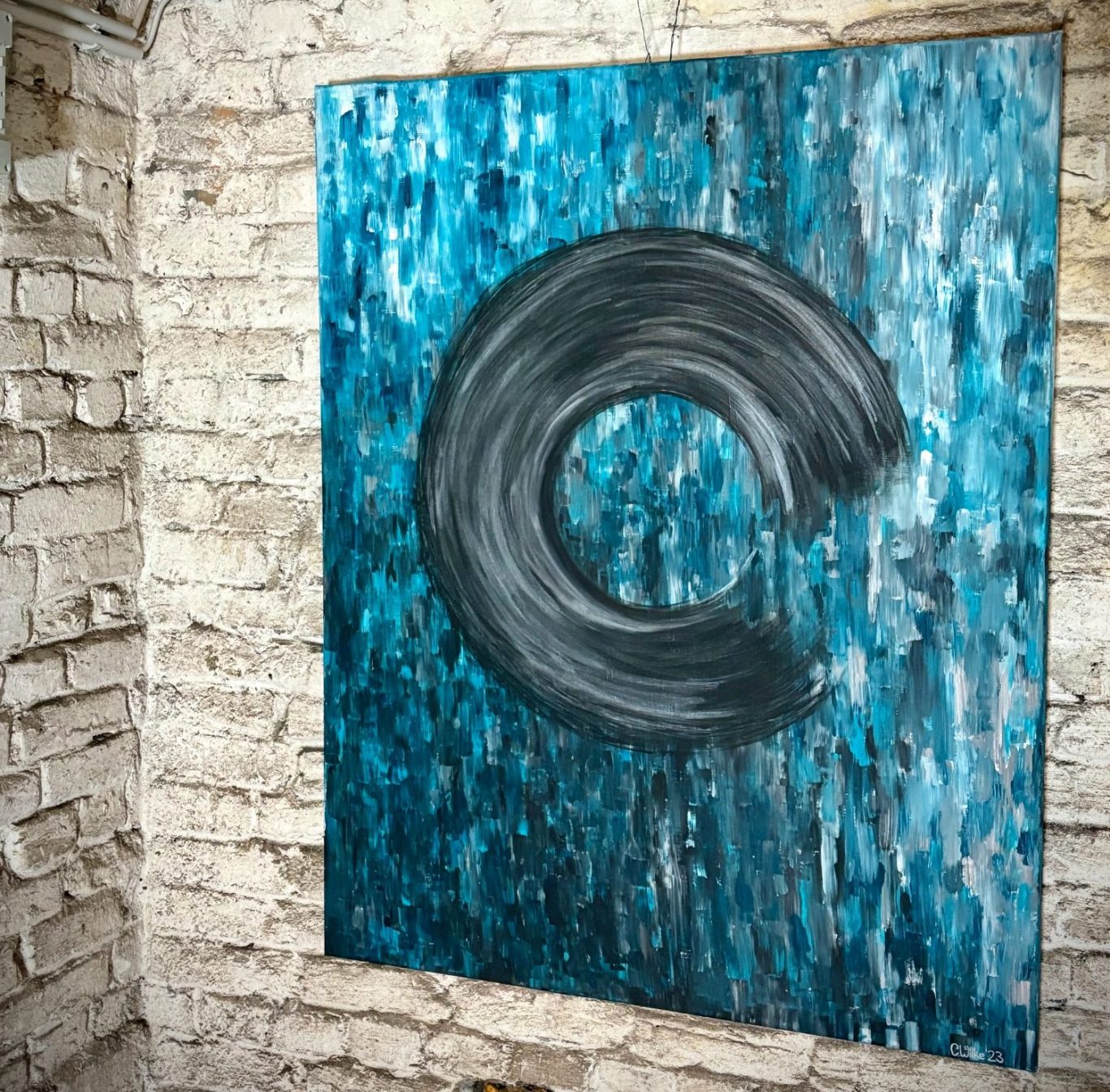 Mitten in zig Blautönen dreht sich was Dunkles – ruhig, aber kraftvoll.